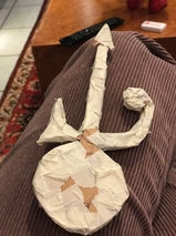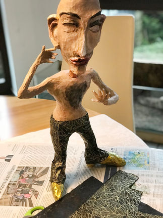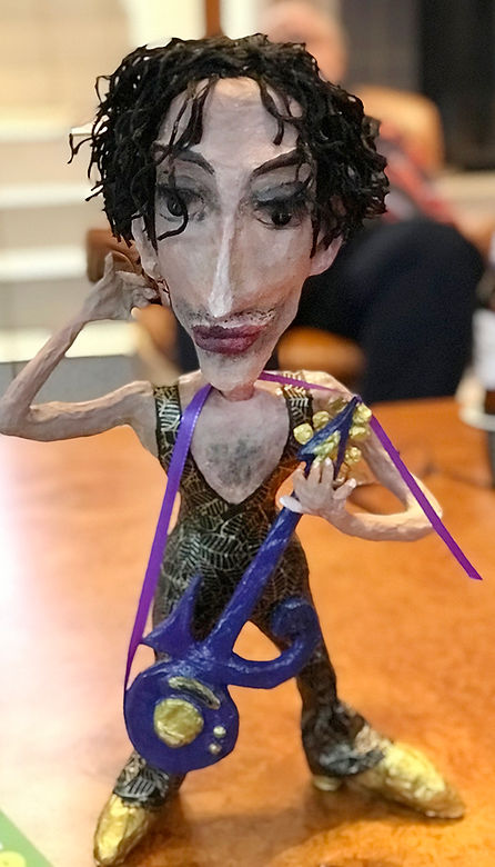 Prince in seiner legendären „Purple Rain“-Gestalt, eingefangen in lebendigem Pappmaché: das violette Outfit, die dynamische Pose und der funkelnde Blick transportieren sofort seine Energie und den unverwechselbaren Glamour, der ihn zur Ikone machte. Mit kunstvoller Hand bemalt und voller Details, wirkt die Figur fast so, als würde sie jeden Moment anfangen, die Bühne zu rocken.